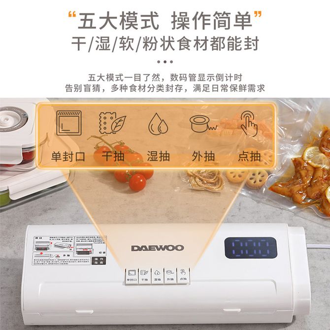 大宇 封口机一键真空智能封压免按压5大模式真空保鲜内置袋槽切割刀随用随裁多功能抽真空封口机 五大模式 智能封压 免压锁鲜 65kPa大吸力 兑换价格 14800 里程 会员卡别 终身白金卡 白金卡 金卡 银卡 普通卡 儿童卡 服务 由 北京致诚博雅贸易有限公司 发货并提供售后 颜色: 其他 购买数量: 件 库存件 配送地址: 立即购买 加入购物车 成功添加到购物车 关闭 购物车共有 种商品 总金额为: