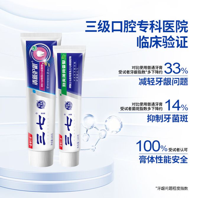 三七 牙膏套装 清火护龈亮白清新口气成人牙膏 2支装 180g+120g 添加三七总皂苷 改善牙龈问题 持久清新口气 兑换价格 1200 里程 会员卡别 终身白金卡 白金卡 金卡 银卡 普通卡 儿童卡 服务 由 上海攀宸贸易有限公司 发货并提供售后 套装分类: 组合装 颜色: 其他 化妆品容量: 组合 购买数量: 件 库存件 配送地址: 立即购买 加入购物车 成功添加到购物车 关闭 购物车共有 种商品 总金额为: