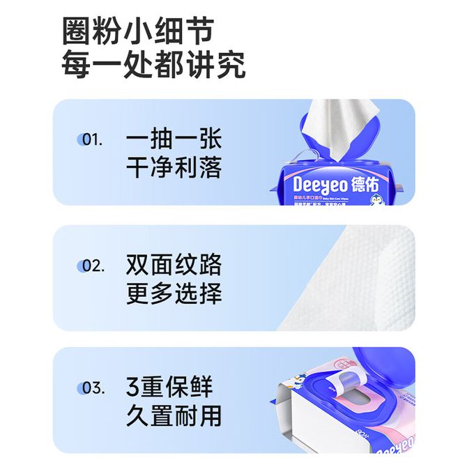 德佑/Deeyeo 婴幼儿手口湿巾80片*12包/箱 水润亲肤湿巾 婴儿手口湿巾新生儿湿纸巾加厚擦脸 婴幼儿手口湿巾80片*12包/箱 兑换价格 5200 里程 会员卡别 终身白金卡 白金卡 金卡 银卡 普通卡 儿童卡 服务 由 广西北部湾网络科技有限公司 发货并提供售后 包装数量: 箱 购买数量: 件 库存件 配送地址: 立即购买 加入购物车 成功添加到购物车 关闭 购物车共有 种商品 总金额为: