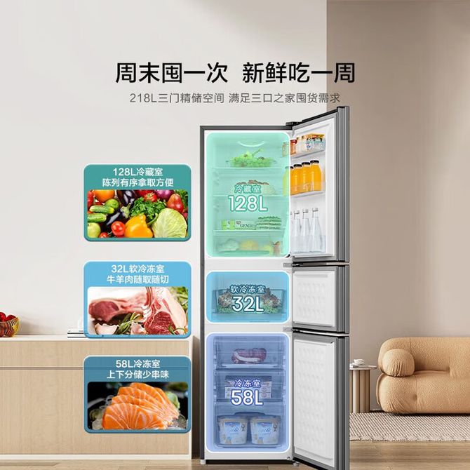 海信/Hisense 冰箱218L小型电冰箱三开门二级能效三门租房用小户型 BCD-218YK1F 小型电冰箱三开门二级能效三门租房用小户型 兑换价格 57800 里程 会员卡别 终身白金卡 白金卡 金卡 银卡 普通卡 儿童卡 服务 由 当益家电 发货并提供售后 颜色: 银色 购买数量: 件 库存件 配送地址: 立即购买 加入购物车 成功添加到购物车 关闭 购物车共有 种商品 总金额为: 组合销售 产品介绍 产品规格 售后服务 产品咨询 发现好货 TCL 118升 小型双门电冰箱 LED照明 办公居家便捷之选 环保内胆 (芭蕾白)BCD-118KA9 34800 里程 TCL 162升双开门小冰箱家用小型两门节能省电静音宿舍租房冷藏冷冻柜R162L3-BZ 晶岩灰 47800 里程 美的(Midea)冰箱 BC-45M 45升单门迷你微型小冰箱租房宿舍办公室家用冷藏小型节能省电电冰箱低音 美妆可用 26100 里程 新飞/Frestec 20L车载冰箱(皓月白)ATP-20L单核机械款 冷热双能 13900 里程 TCL 260升 一级双变频风冷无霜电冰箱 三门三温区 AAT养鲜 节能静音(烟墨蓝)BCD-260TWEPZA50 90900 里程