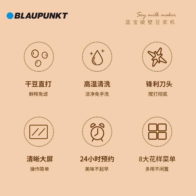BLAUPUNKT 家用豆浆机 800ML容量搅拌机破壁料理机米糊机玉米汁机干豆直打免滤 24小时预约 破壁料理 豆浆机 800ML容量 304不锈钢内胆 干豆直打免滤 24小时预约 兑换价格 8700 里程 会员卡别 终身白金卡 白金卡 金卡 银卡 普通卡 儿童卡 服务 由 广西自贸区京通桂达科技发展有限公司 发货并提供售后 颜色: 其他 购买数量: 件 库存件 配送地址: 立即购买 加入购物车 成功添加到购物车 关闭 购物车共有 种商品 总金额为: 组合销售 产品介绍 产品规格 售后服务 产品咨询 发现好货 WIFER 豆浆机大容量破壁机料理机全自动榨汁机免滤304钢1200ML 3500 里程 九阳 Joyoung 破壁免洗豆浆机0.4-1.5L超大容量 智能熬煮多功能 轻松预约DJ15E-K350 52200 里程 美菱/MELNG 迷你破壁豆浆机全自动破壁机静音家用0.8L MQ-C86 6100 里程 WIFER 不锈钢316豆浆机大容量破壁机料理机全自动榨汁机免滤白316钢 1500ML(整壶1.8L) 4700 里程 九阳(Joyoung)豆浆机1.2L料理机多功能榨汁机米糊辅食机一键清洗可预约DJ12X-D138 11700 里程