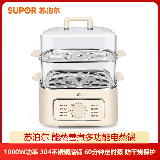 苏泊尔(SUPOR) 家用大容量电蒸锅 1000W功率双层方形蒸格 一机多能蒸包子多用途电蒸锅 9.3L大容量 1000W功率 一机多能 304不锈钢底锅 60分钟定时蒸 防干烧保护 双层方形蒸格 兑换价格 9600 里程 会员卡别 终身白金卡 白金卡 金卡 银卡 普通卡 儿童卡 服务 由 广西桂福礼供应链管理有限公司 发货并提供售后 颜色: 其他 购买数量: 件 库存件 配送地址: 立即购买 加入购物车 成功添加到购物车 关闭 购物车共有 种商品 总金额为: