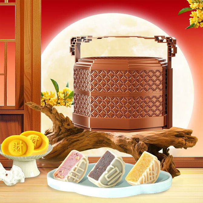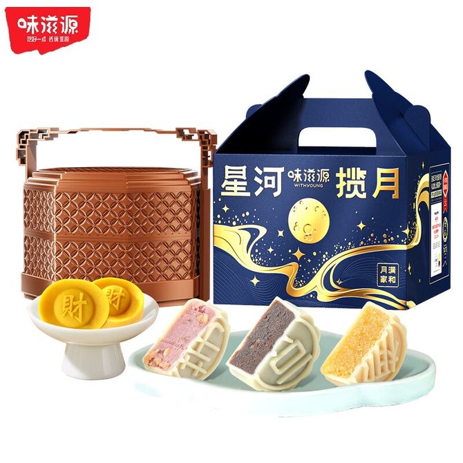 味滋源 星河揽月中秋经典提篮筐月饼礼盒480g(10枚)传统糕点