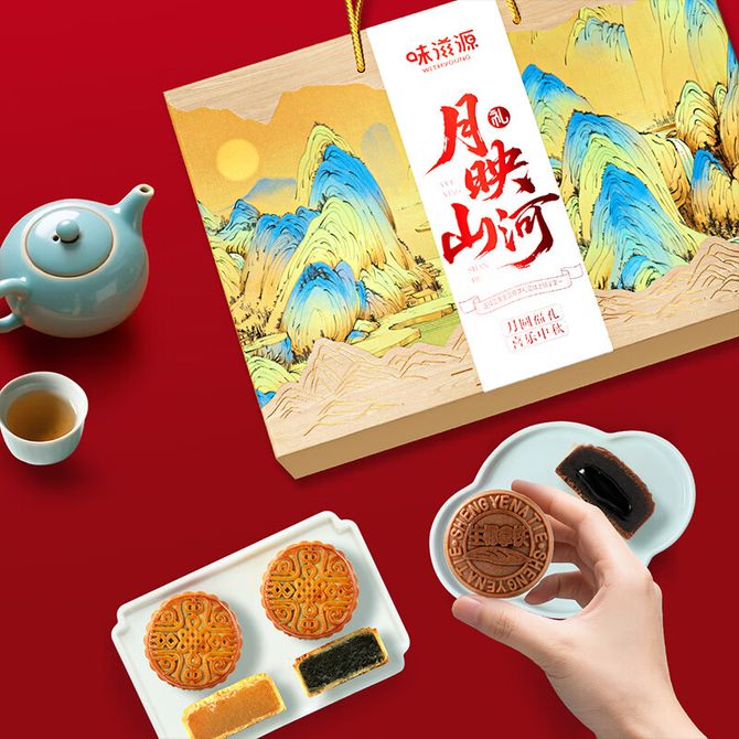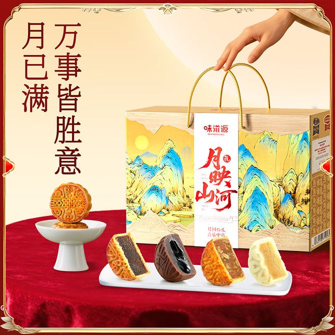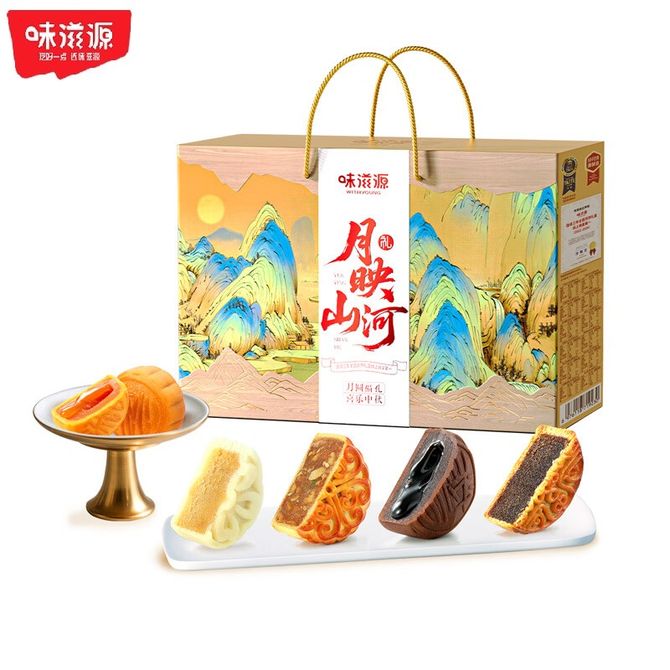 味滋源 月映山河中秋月饼礼盒800g(12枚) 香糯松软咸甜适中浓郁咸蛋黄
