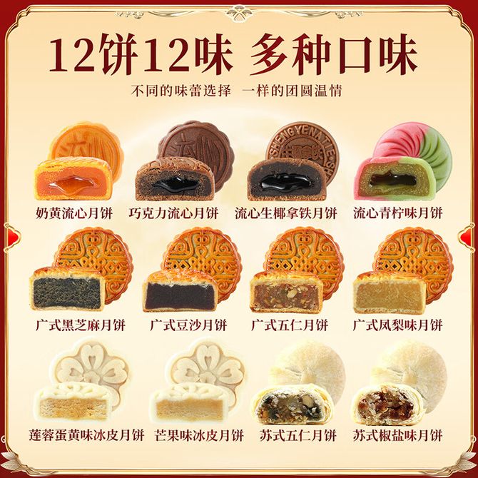 月映山河 800g(12枚);吉享团圆饼承心意,传承经典以味传情共享团圆滋味