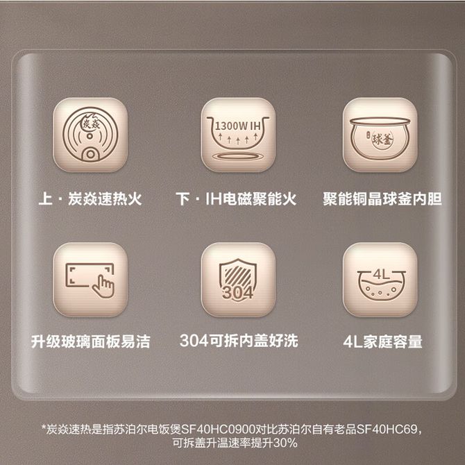 苏泊尔(SUPOR) 电饭煲SF40HC0900 家用多功能电饭锅 ih柴火饭精铁球釜IH电磁加热 智能触屏 商超系列 家用多功能电饭锅 ih柴火饭精铁球釜IH电磁加热 智能触屏 商超系列 兑换价格 30400 里程 会员卡别 终身白金卡 白金卡 金卡 银卡 普通卡 儿童卡 服务 由 纳华优选 发货并提供售后 颜色: 香槟色 购买数量: 件 库存件 配送地址: 立即购买 加入购物车 成功添加到购物车 关闭 购物车共有 种商品 总金额为:
