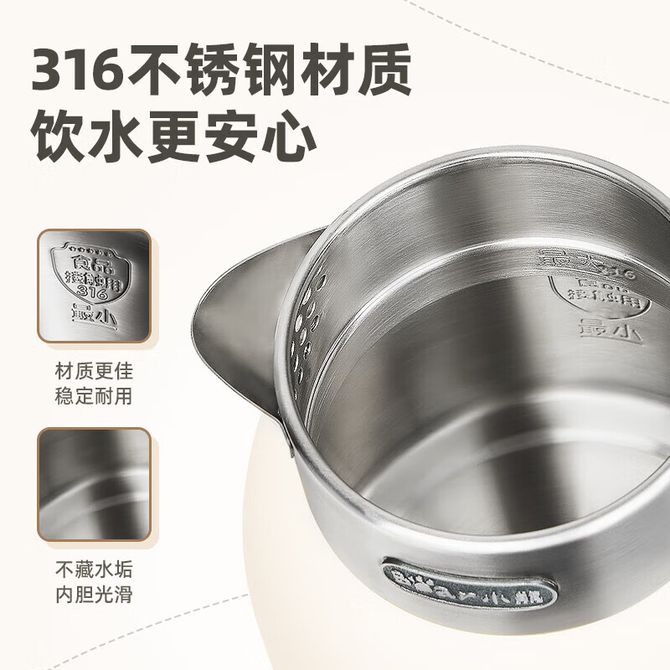 小熊/Bear 电热水壶1.5L大容量精致外观双层防烫进口温控器灵敏控温316不锈钢内胆防干烧断电保护家用电水壶 一键保温 机械按键 壶盖可拆卸 316不锈钢内胆 兑换价格 6500 里程 会员卡别 终身白金卡 白金卡 金卡 银卡 普通卡 儿童卡 服务 由 北京致诚博雅贸易有限公司 发货并提供售后 颜色: 其他 购买数量: 件 库存件 配送地址: 立即购买 加入购物车 成功添加到购物车 关闭 购物车共有 种商品 总金额为:
