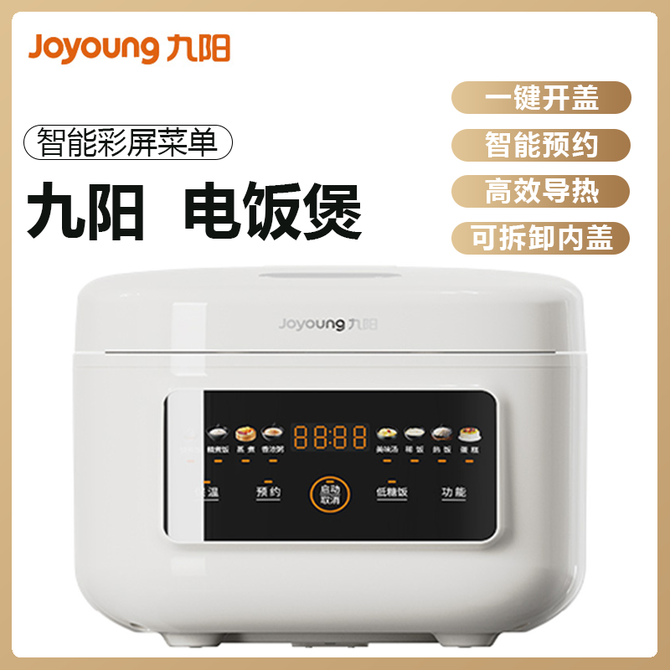 九阳/Joyoung 电饭煲4L家庭容量前置彩屏9大功能菜单铜匠厚釜内胆高效导热不易粘糊健康耐用微电脑智能电饭煲 一键开盖 智能预约 高效导热 可拆卸内盖 兑换价格 10900 里程 会员卡别 终身白金卡 白金卡 金卡 银卡 普通卡 儿童卡 服务 由 北京致诚博雅贸易有限公司 发货并提供售后 颜色: 其他 购买数量: 件 库存件 配送地址: 立即购买 加入购物车 成功添加到购物车 关闭 购物车共有 种商品 总金额为: