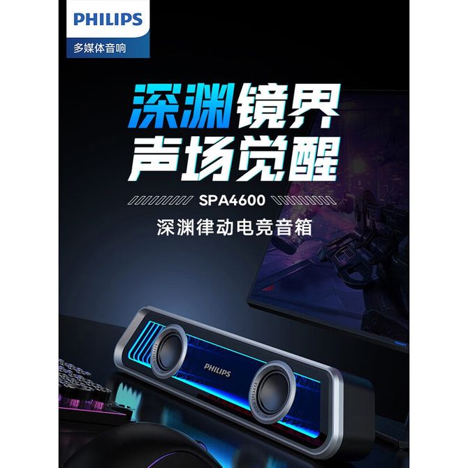 飞利浦/Philips 深渊灯效桌面音箱 蓝牙无线镜面音响炫彩RGB SPA4600 隐藏麦台式笔记本Max SoundBar 蓝牙5.3 兑换价格 8700 里程 会员卡别 终身白金卡 白金卡 金卡 银卡 普通卡 儿童卡 服务 由 有成数码专营店 发货并提供售后 颜色: 亚光黑 购买数量: 件 库存件 配送地址: 立即购买 加入购物车 成功添加到购物车 关闭 购物车共有 种商品 总金额为: 组合销售 产品介绍 产品规格 售后服务 产品咨询 发现好货 漫步者(EDIFIER) R12U台式电脑音响低音炮手机迷你笔记本小音箱USB 台式/笔记本音响 支持USB 时尚外观设计 4000 里程 漫步者(EDIFIER) R10U台式/笔记本电脑USB小音箱 迷你音响 多媒体桌面数码低音炮 3500 里程 漫步者(EDIFIER) R101V多媒体有源音箱2.1声道电脑音响 桌面重低音炮 6500 里程 飞利浦/Philips SPA3809 木质音箱电脑音响台式usb笔记本桌面蓝牙多媒体家用重低音游戏手机支架 高配版数字时钟屏 3900 里程 纽曼(Newmine)N63收音机半导体唱戏机评书戏曲插卡音箱音响 2200 里程