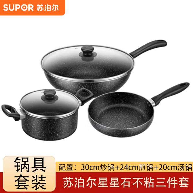 苏泊尔(SUPOR) 星星石不粘三件套 30cm炒锅+24cm煎锅+20cm汤锅家用厨房烹饪锅具套装 配置:30cm炒锅+24cm煎锅+20cm汤锅 兑换价格 11700 里程 会员卡别 终身白金卡 白金卡 金卡 银卡 普通卡 儿童卡 服务 由 众生缘(江苏)互联网科技有限公司 发货并提供售后 颜色: 其他 购买数量: 件 库存件 配送地址: 立即购买 加入购物车 成功添加到购物车 关闭 购物车共有 种商品 总金额为: