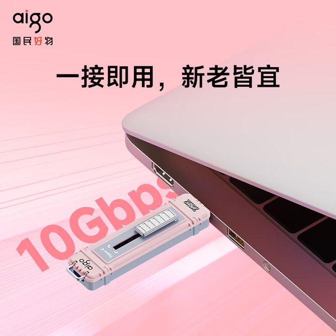 爱国者(aigo) 双接口U盘M1【粉-256GB】 USB3.2 Type-C 高速固态u盘 读写同速1000MB/s 适用手机电脑平板 大容量优盘
