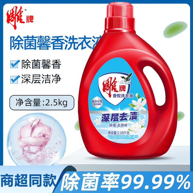 雕牌 香悦系列洗衣液 2.08kg大瓶装 温和低泡 不伤衣物不伤手 深层去渍除菌洗衣液 除菌去异味, 悦享芬芳,茉莉馨香。 兑换价格 1500 里程 会员卡别 终身白金卡 白金卡 金卡 银卡 普通卡 儿童卡 服务 由 京狮文化生活馆 发货并提供售后 净含量: 其他容量 清洁剂容量: 其他容量 购买数量: 件 库存件 配送地址: 立即购买 加入购物车 成功添加到购物车 关闭 购物车共有 种商品 总金额为: 组合销售 产品介绍 产品规格 售后服务 产品咨询 发现好货 蓝月亮 深层洁净洗衣液4斤 1kgx1瓶+500gx2补充装 薰衣草香 强效去渍 1500 里程 威露士/Walch La有氧洗洗衣液套装 4斤松木清香(瓶1L+袋500ml*2) 除菌除螨 1900 里程 威露士 洗衣液除菌机洗手洗家用除螨去污1L*1瓶 1500 里程 蓝月亮 亮白增艳洗衣液2斤 1kg*1瓶 1100 里程 蓝月亮 护理洗衣液去污去渍 保护衣物纤维和原色 薰衣草香 1kg*2瓶 持久留香 速溶易漂 温和配方 1500 里程