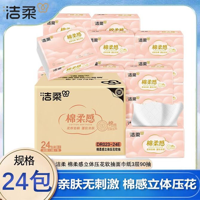 洁柔 棉柔感立体压花软抽面巾纸3层90抽24包装(新旧包装随机发) 亲肤无刺激 棉感立体压花 不含可迁移性荧光物质 兑换价格 2200 里程 会员卡别 终身白金卡 白金卡 金卡 银卡 普通卡 儿童卡 服务 由 广西北部湾网络科技有限公司 发货并提供售后 包装数量: 箱 购买数量: 件 库存件 配送地址: 立即购买 加入购物车 成功添加到购物车 关闭 购物车共有 种商品 总金额为: 组合销售 产品介绍 产品规格 售后服务 产品咨询 发现好货 维达卷纸 卫生纸实惠装厕纸家用厕所纸巾手纸整箱批有芯大卷家庭装 1200-2300 里程 维达 Vinda 卷纸 140g/卷*10卷 蓝色经典3层卫生纸 1300 里程 心相印抽纸 茶语丝享系列 量贩家庭装 3层*100抽*4包(茶香 压花) 1100 里程 心相印 经典系列 二层面巾纸 180抽*6包*1提 1100 里程 维达Vinda 超韧系列抽纸(3层*130抽*6包) 原生木浆卫生餐巾纸婴儿面巾纸 6包优惠装 1100 里程