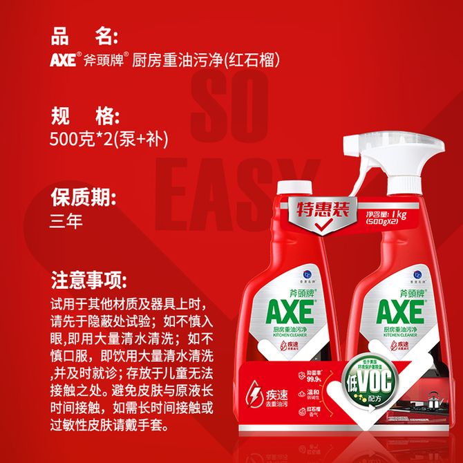 斧頭牌 红石榴晶怡厨房重油污净泵装 500g*2瓶 油污清洁剂 1、除菌率99.9% 有效清除常见细菌;2、极速去重油污 轻轻一喷极速渗透;3、红石榴清香 不刺激呼吸道 兑换价格 1300 里程 会员卡别 终身白金卡 白金卡 金卡 银卡 普通卡 儿童卡 服务 由 沧海一栗洗护店 发货并提供售后 清洁剂容量: 其他容量 净含量: 其他容量 购买数量: 件 库存件 配送地址: 立即购买 加入购物车 成功添加到购物车 关闭 购物车共有 种商品 总金额为:
