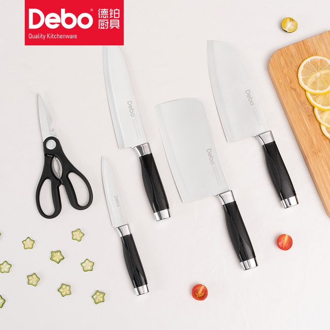 Debo 刀具套装不锈钢菜刀切片刀剪刀六件套 博拉兹DEP-797 马氏体型不锈钢 组合 :6件套 配置 :菜刀*1 切片刀*1 水果刀*1三德刀 厨房剪*1 刀座*1 防腐防锈 兑换价格 5700 里程 会员卡别 终身白金卡 白金卡 金卡 银卡 普通卡 儿童卡 服务 由 百宝诚 发货并提供售后 颜色: 黑色 购买数量: 件 库存件 配送地址: 立即购买 加入购物车 成功添加到购物车 关闭 购物车共有 种商品 总金额为: 组合销售 产品介绍 产品规格 售后服务 产品咨询 发现好货 张小泉 不锈钢折叠便携水果刀精磨刃口SK-2 1100 里程 愉家菜刀专用快速磨刀器 家用三段精磨口多功能磨刀石K133 1100 里程 苏泊尔supor 厨房刀具不锈钢套装 尖峰系列7件套刀.TK1520Q 14800 里程 双立人(ZWILLING) 水果刀削皮刀刮皮刀家用小刀多功能蔬果刀刀具Enjoy厨刀8cm 3300 里程 张小泉 玲珑系列不锈钢水果刀D20794000 1100 里程