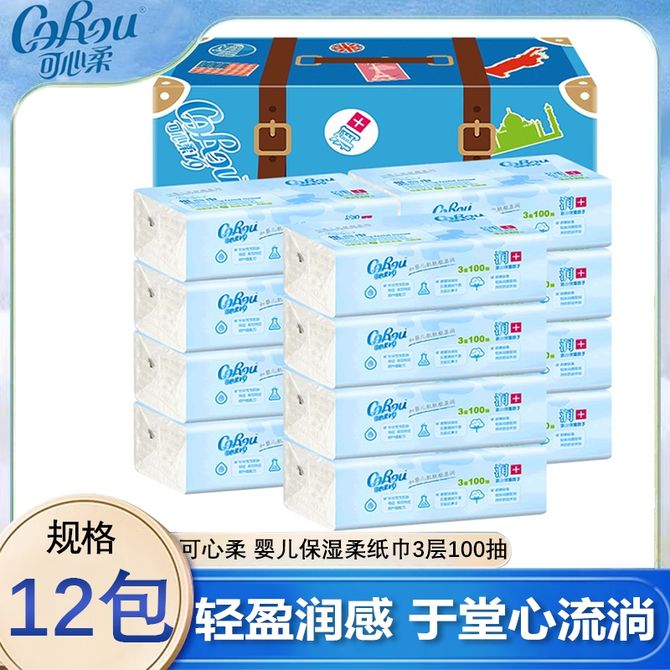 可心柔 V9婴儿保湿柔纸巾3层100抽12包(新旧包装随机发) 1/3保湿因子擦拭间滋柔呵护,安全认证贴心守护0荧光0甲醛 兑换价格 2700 里程 会员卡别 终身白金卡 白金卡 金卡 银卡 普通卡 儿童卡 服务 由 广西北部湾网络科技有限公司 发货并提供售后 包装数量: 12包 购买数量: 件 库存件 配送地址: 立即购买 加入购物车 成功添加到购物车 关闭 购物车共有 种商品 总金额为: 组合销售 产品介绍 产品规格 售后服务 产品咨询 发现好货 维达卷纸 卫生纸实惠装厕纸家用厕所纸巾手纸整箱批有芯大卷家庭装 1200-2300 里程 维达 Vinda 卷纸 140g/卷*10卷 蓝色经典3层卫生纸 1300 里程 心相印抽纸 茶语丝享系列 量贩家庭装 3层*100抽*4包(茶香 压花) 1100 里程 心相印 经典系列 二层面巾纸 180抽*6包*1提 1100 里程 维达Vinda 超韧系列抽纸(3层*130抽*6包) 原生木浆卫生餐巾纸婴儿面巾纸 6包优惠装 1100 里程