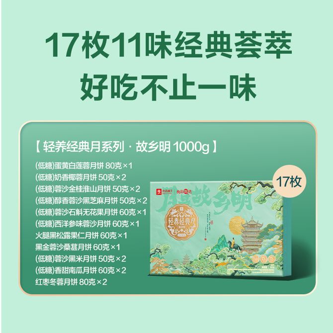 故乡明 中秋月饼礼盒11味17饼 1000g