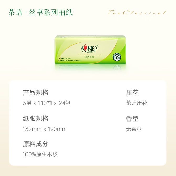 心相印 24包110抽三层塑装纸面巾DT15110(箱装)茶语丝享(可报活动款) 24包110抽三层塑装纸面巾DT15110(箱装)茶语丝享(可报活动款) 兑换价格 2500 里程 会员卡别 终身白金卡 白金卡 金卡 银卡 普通卡 儿童卡 服务 由 华礼个护 发货并提供售后 包装数量: 箱 购买数量: 件 库存件 配送地址: 立即购买 加入购物车 成功添加到购物车 关闭 购物车共有 种商品 总金额为: 组合销售 产品介绍 产品规格 售后服务 产品咨询 发现好货 维达卷纸 卫生纸实惠装厕纸家用厕所纸巾手纸整箱批有芯大卷家庭装 1200-2300 里程 维达 Vinda 卷纸 140g/卷*10卷 蓝色经典3层卫生纸 1300 里程 心相印抽纸 茶语丝享系列 量贩家庭装 3层*100抽*4包(茶香 压花) 1100 里程 心相印 经典系列 二层面巾纸 180抽*6包*1提 1100 里程 维达Vinda 超韧系列抽纸(3层*130抽*6包) 原生木浆卫生餐巾纸婴儿面巾纸 6包优惠装 1100 里程