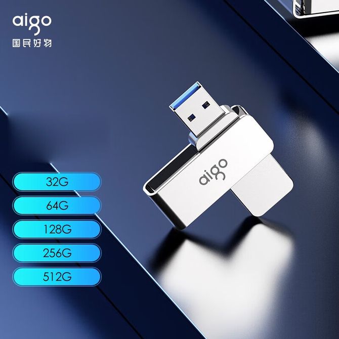 爱国者(aigo) U盘U330银色【512GB】 USB3.2 读速150MB/s 金属旋转系列 快速传输 出色出众