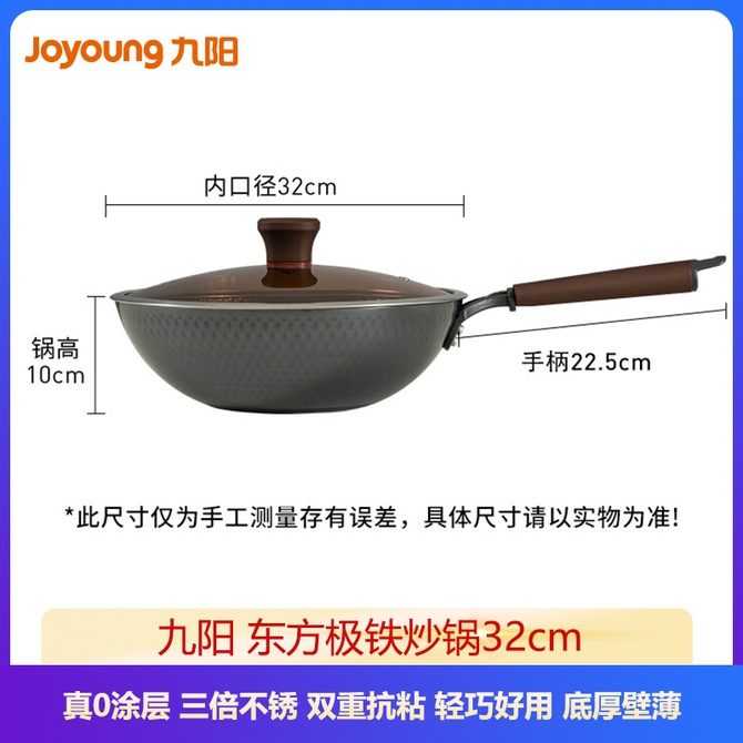 九阳/Joyoung 精品东方极铁炒锅真0涂层双重抗粘 轻巧好用均匀导热32cm (此款为32CM,详情图片共用)真0涂层 三倍不锈 双重抗粘 轻巧好用 底厚壁薄 聚能锅底 兑换价格 8700 里程 会员卡别 终身白金卡 白金卡 金卡 银卡 普通卡 儿童卡 服务 由 卓鹏商贸生活馆 发货并提供售后 颜色: 其他 购买数量: 件 库存件 配送地址: 立即购买 加入购物车 成功添加到购物车 关闭 购物车共有 种商品 总金额为: