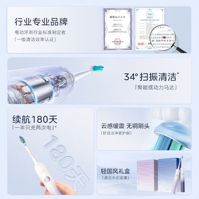 美的/Midea 电动牙刷成人 180天长续航云感缓震刷防飞溅软毛刷头呵护牙龈扫震升级高效清洁牙齿 美的电动牙刷 成人款 YM3冰玉紫,刚柔并济,净齿护龈。 兑换价格 5700 里程 会员卡别 终身白金卡 白金卡 金卡 银卡 普通卡 儿童卡 服务 由 广西桂福礼供应链管理有限公司 发货并提供售后 颜色: 其他 购买数量: 件 库存件 配送地址: 立即购买 加入购物车 成功添加到购物车 关闭 购物车共有 种商品 总金额为: