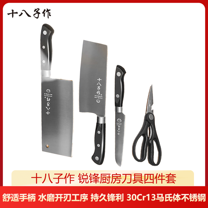 十八子作 厨房刀具套装斩切刀+切片刀+水果刀+厨房剪 持久锋利家用刀具四件套装 舒适手柄 轻松在握 水磨开刃工序 持久锋利 30Cr13马氏体不锈钢 兑换价格 3900 里程 会员卡别 终身白金卡 白金卡 金卡 银卡 普通卡 儿童卡 服务 由 广西桂雅文化传媒有限公司 发货并提供售后 颜色: 其他 购买数量: 件 库存件 配送地址: 立即购买 加入购物车 成功添加到购物车 关闭 购物车共有 种商品 总金额为: 组合销售 产品介绍 产品规格 售后服务 产品咨询 发现好货 张小泉 不锈钢折叠便携水果刀精磨刃口SK-2 1100 里程 苏泊尔supor 厨房刀具不锈钢套装 尖峰系列7件套刀.TK1520Q 14800 里程 愉家菜刀专用快速磨刀器 家用三段精磨口多功能磨刀石K133 1100 里程 双立人(ZWILLING) 水果刀削皮刀刮皮刀家用小刀多功能蔬果刀刀具Enjoy厨刀8cm 3300 里程 拜格(BAYCO)日式小菜刀料理刀水果刀3件套 家用厨具刀具套装BD3138 1300 里程
