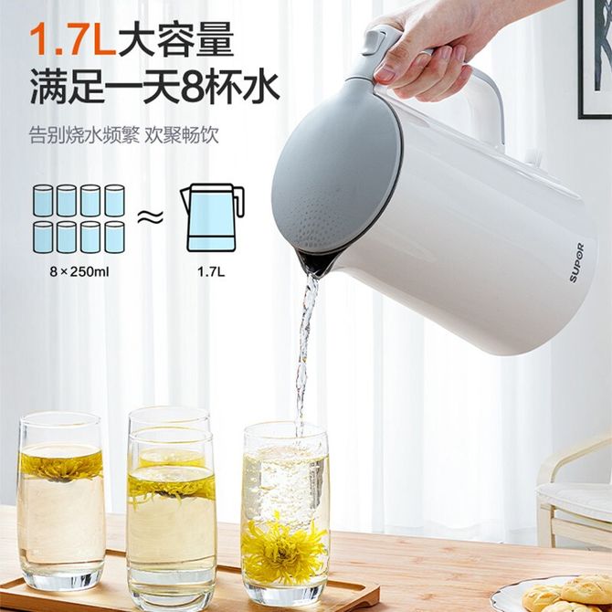 苏泊尔/Supor 电水壶 双层防烫1.7L容量烧水壶全钢无缝内胆电热水壶热水壶热水瓶 无缝一体内胆 清洁方便不纳垢 食品级304不锈钢 1500W大功率 自下而上循环加热 兑换价格 10000 里程 会员卡别 终身白金卡 白金卡 金卡 银卡 普通卡 儿童卡 服务 由 观脂电器 发货并提供售后 颜色: 白色 购买数量: 件 库存件 配送地址: 立即购买 加入购物车 成功添加到购物车 关闭 购物车共有 种商品 总金额为: 组合销售 产品介绍 产品规格 售后服务 产品咨询 发现好货 苏泊尔(SUPOR)电水壶 1.7L 不锈钢/YL SW-17S13A 5700 里程 志高/Chigo 电水壶烧水壶1.8L大容量电热水壶双层防烫自动断电家用烧水开水壶不锈钢 电水壶 DC-A18F 1900 里程 小熊/Bear 电水壶家用烧水壶 不锈钢自动断电恒温热水壶保温一体电热水壶1.5L容量 3500 里程 小熊/Bear 烧水壶电水壶热水壶电热水壶开水壶304不锈钢内胆双层防烫1.5L大容量ZDH-Q15U8 3000 里程 志高(CHIGO) 电水壶1.8L大容量烧水壶家用热水壶开水壶DC-A18F 1900 里程