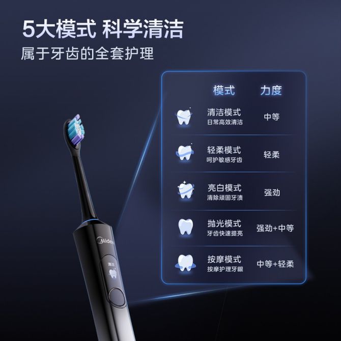 美的/Midea 智能电动牙刷高端电牙刷 充电牙刷牙齿清洁PX8级防水女士男士牙刷实用礼物 高端系列智能电动牙刷 智能力度感应 5大洁牙模式 PX8级防水 实时刷牙报告 兑换价格 10900 里程 会员卡别 终身白金卡 白金卡 金卡 银卡 普通卡 儿童卡 服务 由 广西自贸区京通桂达科技发展有限公司 发货并提供售后 颜色: 其他 购买数量: 件 库存件 配送地址: 立即购买 加入购物车 成功添加到购物车 关闭 购物车共有 种商品 总金额为: 组合销售 产品介绍 产品规格 售后服务 产品咨询 发现好货 小米 声波电动牙刷家用男女高频振动充电式防水牙刷 T300标准版 4400 里程 京东京造 冲牙器 家用立式洗牙器洁牙器水牙线 洗牙神器 JZCY-06B 6500 里程 港德 电动便携冲牙器 水牙线 豪华款4个喷嘴 200ml大容量水箱 RD-A76-4 3400 里程 飞利浦/Philips 电动牙刷头HX9021适配HX6511/HX6730/HX6761/HX3226/ 2400 里程 小米 声波电动牙刷家用电牙刷男女士牙刷高频振动充电式防水牙刷牙齿清洁 4400 里程