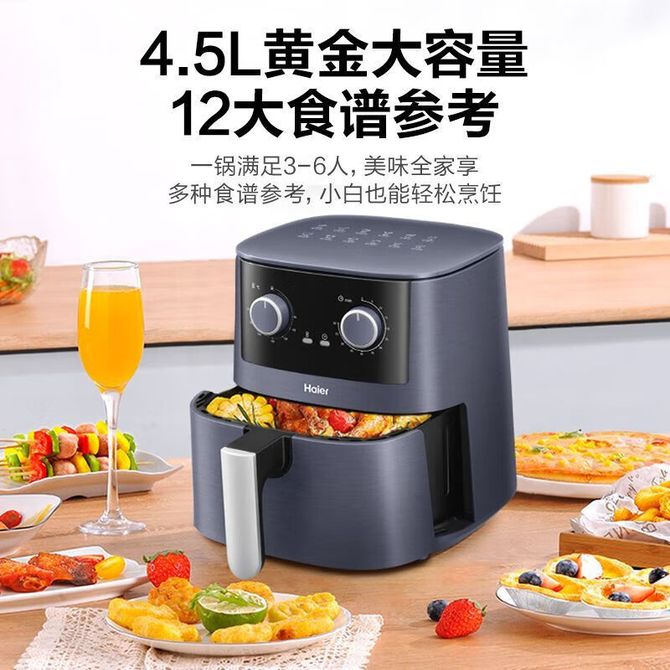 海尔(Haier) 空气炸锅 4.5L黄金大容量 不粘内胆 (HA-E4510S) 周一到周五 工作日发货 兑换价格 13100 里程 会员卡别 终身白金卡 白金卡 金卡 银卡 普通卡 儿童卡 服务 由 唯思启家用电器 发货并提供售后 颜色: 其他 购买数量: 件 库存件 配送地址: 立即购买 加入购物车 成功添加到购物车 关闭 购物车共有 种商品 总金额为: 组合销售 产品介绍 产品规格 售后服务 产品咨询 发现好货 苏泊尔(SUPOR)空气炸锅 家用多功能4.2L大容量 烤箱薯条机 无油烟电炸锅 大功率 无油低脂煎炸锅KJ42D811 7800 里程 美的/Midea 空气炸锅 家用5升可视炸锅金属内腔体微蒸汽多功能智能双旋控温电炸锅 KZE5089 10900 里程 小熊/Bear 空气炸锅 4D漩烤不用翻面 全自动 5L实用大容量 可视 蒸汽嫩炸 控油脱脂 炸烤箱一体机 9100 里程 奥克斯 电火锅 电炒锅 电煮锅 火锅锅 电锅一体锅 家用多功能料理烤肉电热锅 多用途锅大容量 无笼款 5L 4800 里程 苏泊尔(SUPOR)多功能锅料理锅电火锅多用途电煮锅不粘电热锅家用电炒锅方形烤盘煎烤锅JD3424D08-150 YL 13000 里程