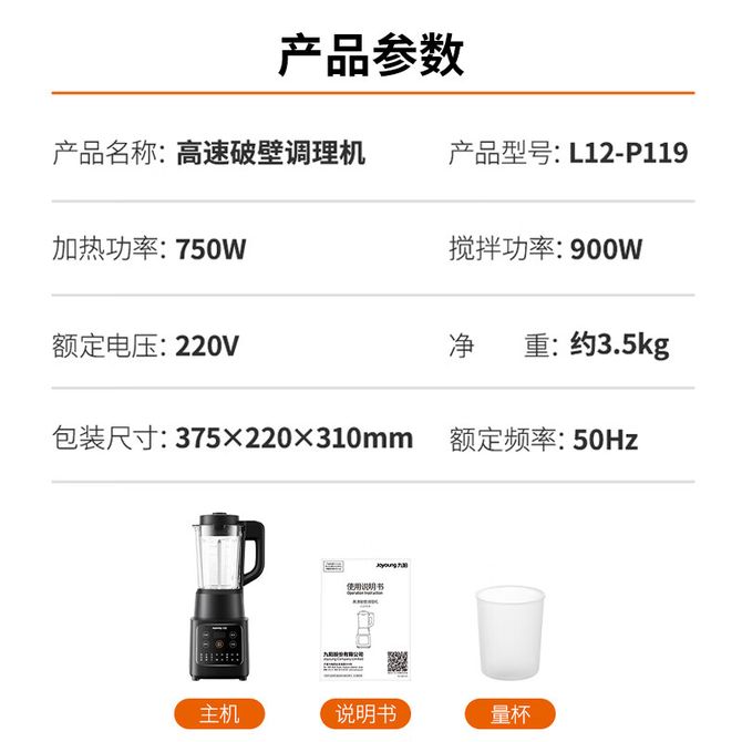 九阳/Joyoung 料理机搅拌机破壁机家用豆浆机多功能榨汁辅食机可预约 L12-P119 曜石黑 1、冷热双打 满足多重味蕾需求;2、陶瓷涂层防糊底,细腻丝滑好口感;3、降噪不降速 营养又好喝 兑换价格 14000 里程 会员卡别 终身白金卡 白金卡 金卡 银卡 普通卡 儿童卡 服务 由 九樱互动家电专营店 发货并提供售后 颜色: 黑色 购买数量: 件 库存件 配送地址: 立即购买 加入购物车 成功添加到购物车 关闭 购物车共有 种商品 总金额为: