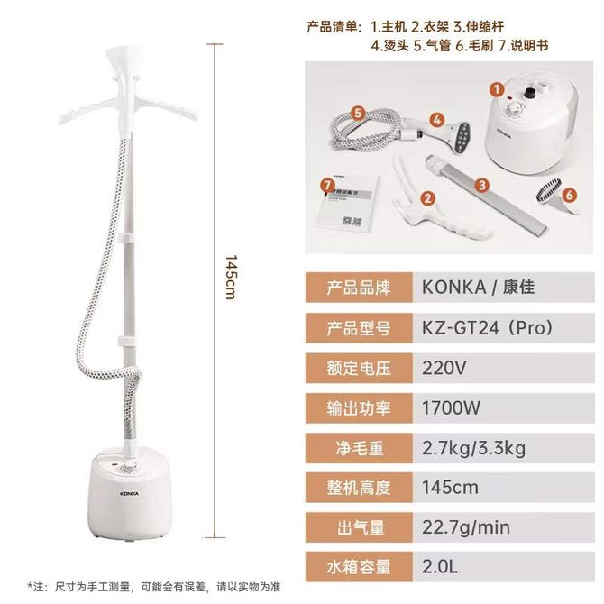 康佳/Konka 挂烫机可升降家用蒸汽熨衣机强劲除皱蒸挂烫机手持挂式电熨斗熨衣机KZ-GT24(Pro) 康佳新款挂烫机,强劲除皱,快速出蒸汽,伸缩调节杆,2.0L可视水箱,10档调控 兑换价格 10900 里程 会员卡别 终身白金卡 白金卡 金卡 银卡 普通卡 儿童卡 此商品正在进行团购,点击查看活动详情 服务 由 广西桂福礼供应链管理有限公司 发货并提供售后 颜色: 其他 购买数量: 件 库存件 配送地址: 立即购买 加入购物车 成功添加到购物车 关闭 购物车共有 种商品 总金额为: