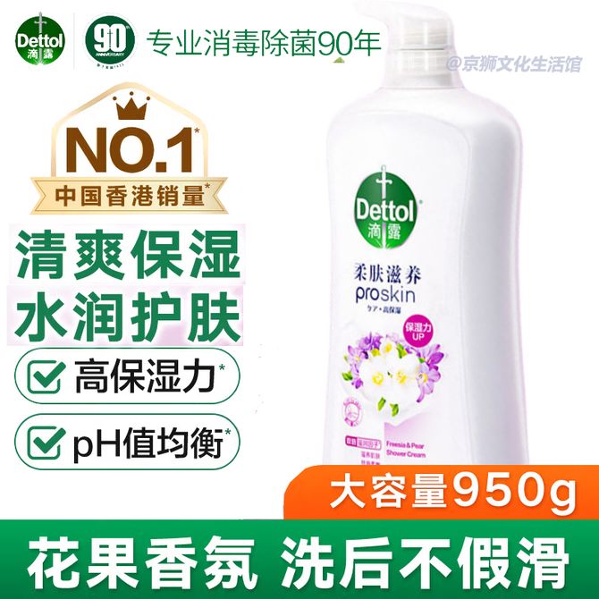 滴露/Dettol 柔肤滋养沐浴露 小苍兰与蜜梨香950g 沐浴露家庭装男士女士儿童通用 柔和保湿 新旧包装随机发货
