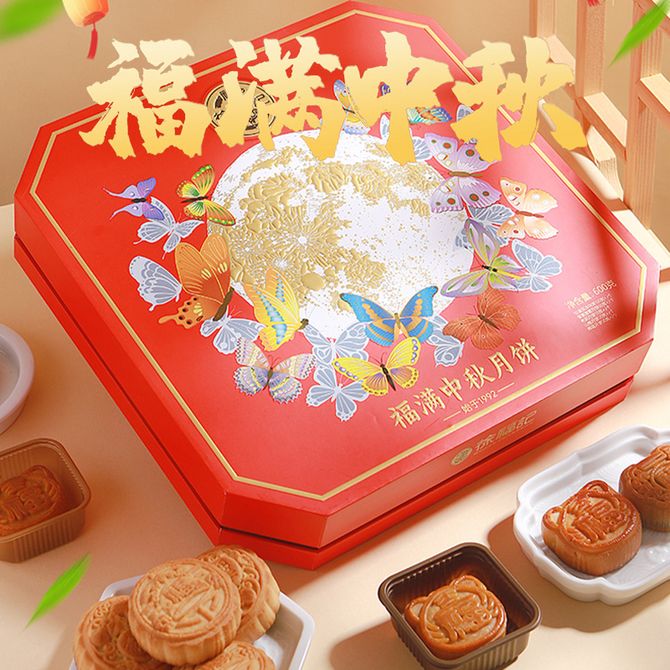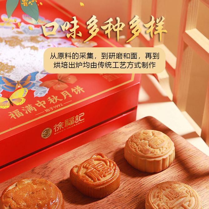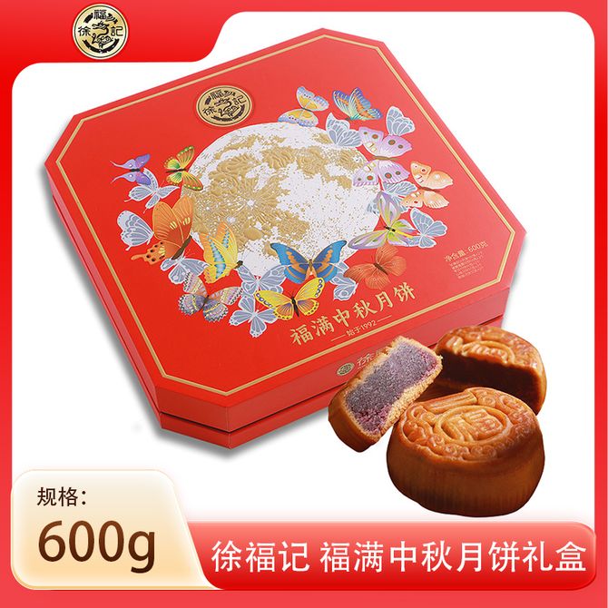 徐福记 福满中秋月饼礼盒600g中秋月饼皮薄甜糯黄金酥皮中秋佳节送礼