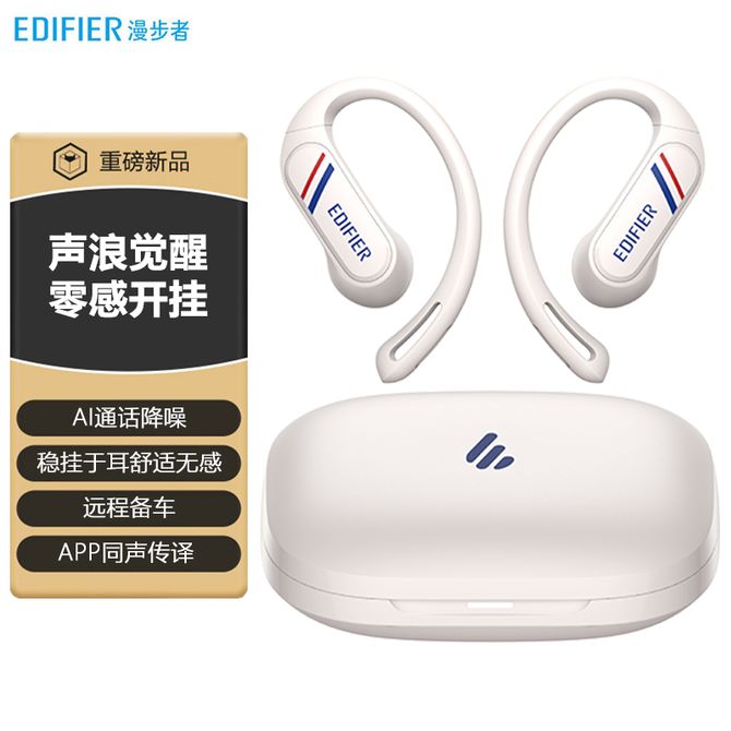 漫步者 开放式蓝牙耳机同声传译蓝牙V6.1挂耳式运动跑步耳机 Comfo-SE优雅白 AI通话降噪 防风噪结构 兑换价格 11300 里程 会员卡别 终身白金卡 白金卡 金卡 银卡 普通卡 儿童卡 服务 由 贝洛美智能科技精品馆 发货并提供售后 颜色: 白色 购买数量: 件 库存件 配送地址: 立即购买 加入购物车 成功添加到购物车 关闭 购物车共有 种商品 总金额为: 组合销售 产品介绍 产品规格 售后服务 产品咨询 发现好货 雷摄 运动蓝牙耳机无线跑步超长续航待机半入耳降噪高端健身2024新款 BT-03半入耳 1400 里程 华为/Huawei FreeBuds SE 3 无线蓝牙耳机 流光金 6100 里程 纽曼 LY63蓝牙耳机耳夹式骨传导概念开放式不入耳无线运动音乐通话降噪 3400 里程 纽曼(Newmine) 夹耳式蓝牙耳机 超无感佩戴空气感舒适体验 LY63 3400 里程 飞利浦(PHILIPS) 骨传导通话降噪耳夹式真无线开放耳机TAT3469 7000 里程