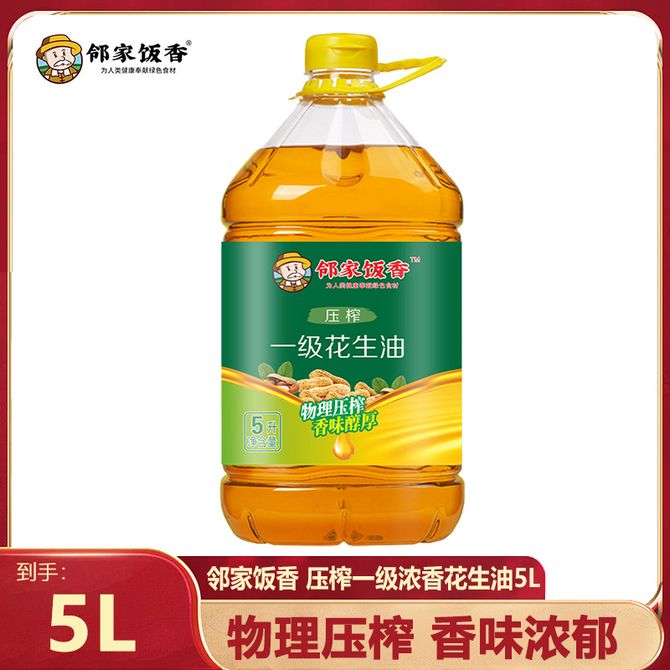 邻家饭香 浓香花生油5L物理压榨达国标0反式脂肪酸花生油益健康炒菜烘焙