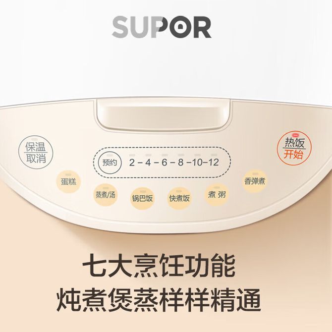 苏泊尔/Supor 电饭煲 智能预约多功能微压力焖煮家用3L容量饭煲 微压烹饪 激发米饭原香 全自动保温 免看管不溢锅 七大烹饪功能 炖煮煲蒸样样精通 兑换价格 11000 里程 会员卡别 终身白金卡 白金卡 金卡 银卡 普通卡 儿童卡 服务 由 观脂电器 发货并提供售后 颜色: 其他 购买数量: 件 库存件 配送地址: 立即购买 加入购物车 成功添加到购物车 关闭 购物车共有 种商品 总金额为: 组合销售 产品介绍 产品规格 售后服务 产品咨询 发现好货 苏泊尔(SUPOR) 电饭煲电饭锅4L大容量 不粘内胆4-6个人前置大屏面板24小时预约上蒸下煮多功能家用智能SF40FC0063 7700 里程 美菱/MELNG 电饭煲3L触控式预约定时MF-LC3005 4400 里程 美的(Midea) 电饭煲 家用3L智能预约多功能电饭锅小型1-4人煮饭锅智能 白色 MB-FB30M161 7800 里程 康佳/Konka 迷你电饭煲小电饭锅2L容量智能温控12小时预约煮饭煮粥锅 4800 里程 美的/Midea 电饭煲电饭锅3-4个人家用4L大容量聚能釜金属机身大火力米饭锅【升级焖香阀】RE417 8700 里程
