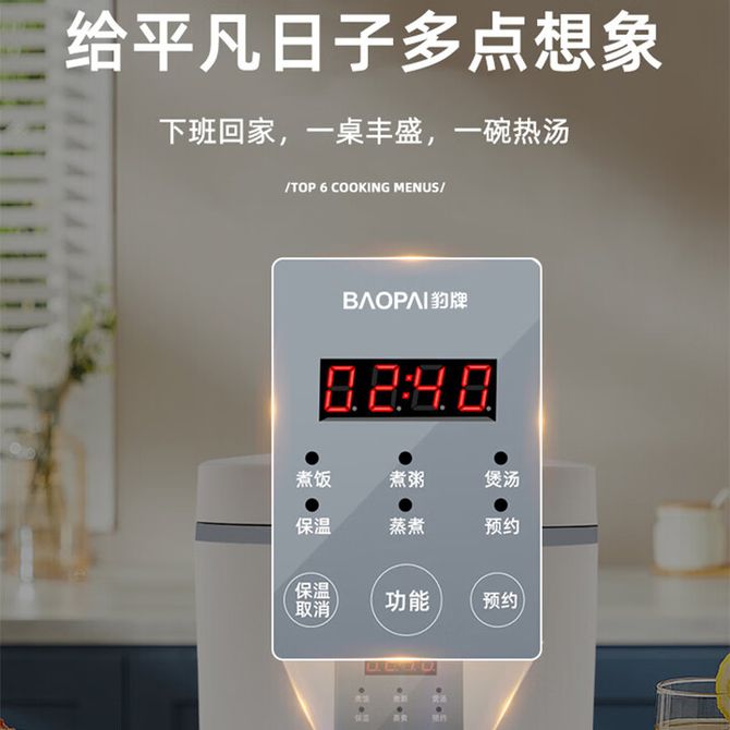豹牌 BP-WB166 多功能电饭煲 可拆卸铝合金内盖 12小时智能预约 兑换价格 21300 里程 会员卡别 终身白金卡 白金卡 金卡 银卡 普通卡 儿童卡 服务 由 弘济家电 发货并提供售后 颜色: 白色 购买数量: 件 库存件 配送地址: 立即购买 加入购物车 成功添加到购物车 关闭 购物车共有 种商品 总金额为: 组合销售 产品介绍 产品规格 售后服务 产品咨询 发现好货 苏泊尔(SUPOR) 电饭煲电饭锅4L大容量 不粘内胆4-6个人前置大屏面板24小时预约上蒸下煮多功能家用智能SF40FC0063 7700 里程 美菱/MELNG 电饭煲3L触控式预约定时MF-LC3005 4400 里程 美的(Midea) 电饭煲 家用3L智能预约多功能电饭锅小型1-4人煮饭锅智能 白色 MB-FB30M161 7800 里程 康佳/Konka 迷你电饭煲小电饭锅2L容量智能温控12小时预约煮饭煮粥锅 4800 里程 美的/Midea 电饭煲电饭锅3-4个人家用4L大容量聚能釜金属机身大火力米饭锅【升级焖香阀】RE417 8700 里程