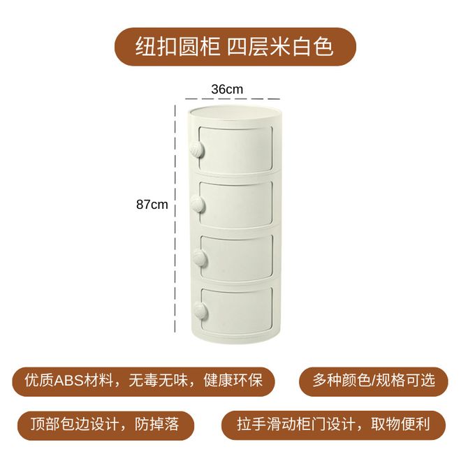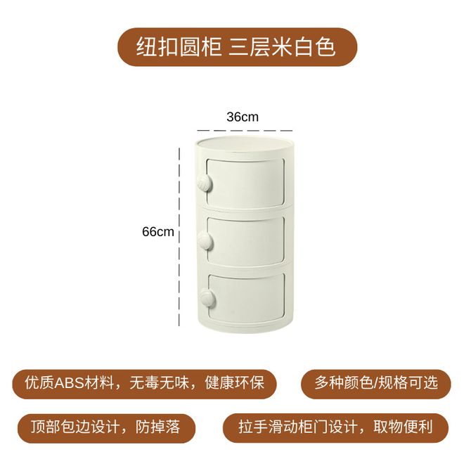 友耐/Younal 多功能储物柜 多层床头收 纳柜 家用卧室圆形储物 (2层选白、3层选米白、4层选象牙白)