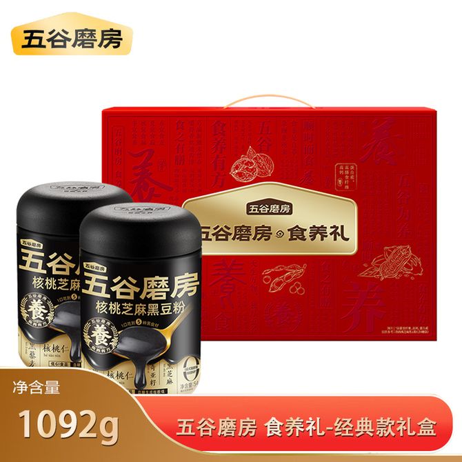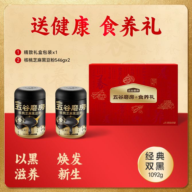 五谷磨房 食养礼-经典款1092g礼盒黑芝麻糊核桃芝麻黑豆粉五黑粉送父母 低GI 轻负担 兑换价格 5200 里程 会员卡别 终身白金卡 白金卡 金卡 银卡 普通卡 儿童卡 服务 由 广西桂人礼互联网科技有限公司 发货并提供售后 规格: 礼盒 购买数量: 件 库存件 配送地址: 立即购买 加入购物车 成功添加到购物车 关闭 购物车共有 种商品 总金额为: 组合销售 产品介绍 产品规格 售后服务 产品咨询 发现好货 西麦 即食燕麦片1000g桶装营养早餐谷物代餐无额外添加蔗糖 1400 里程 燕之坊 黑八宝450g 黑芝麻糊桑葚奇亚籽芝麻核桃黑豆早餐代餐粉 即食速溶 3000 里程 阴山优麦即食纯燕麦片 全胚芽裸燕麦 营养早餐谷物 膳食纤维 1000g 罐装 2400 里程 西麦 有机即食高蛋白营养早餐冲饮谷物代餐纯燕麦片880g 1700 里程 燕之坊 红豆薏米枸杞粉 红小豆赤小豆薏米薏仁代餐粉 500g 低卡饱腹 3500 里程