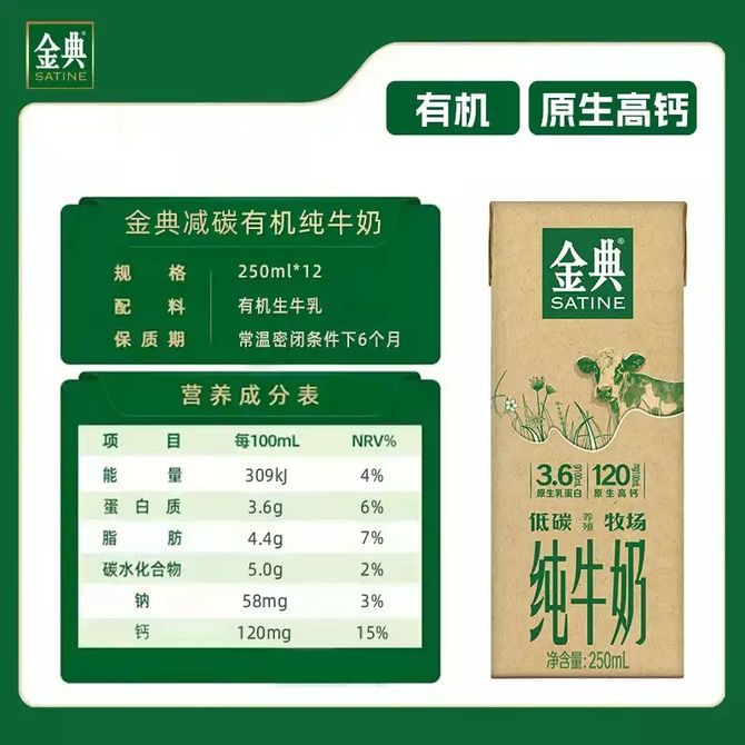 伊利 1箱金典有机纯牛奶250毫升12盒 金典有机 营养健康 兑换价格 2900 里程 会员卡别 终身白金卡 白金卡 金卡 银卡 普通卡 儿童卡 服务 由 南美进口馆 发货并提供售后 规格: 组合 购买数量: 件 库存件 配送地址: 立即购买 加入购物车 成功添加到购物车 关闭 购物车共有 种商品 总金额为: 组合销售 产品介绍 产品规格 售后服务 产品咨询 发现好货 蒙牛 特仑苏纯牛奶苗条装250ml×12盒 2900 里程 三元 经典小方白全脂纯牛奶250ml*24盒牛奶 整箱 3400 里程 伊利金典纯牛奶250ml*12盒整箱 2200 里程 三元 极致 全脂纯牛奶250ml*12盒 优质乳蛋白 恪守天然亲和 2900 里程 伊利 金典纯牛奶整箱 250ml*12盒 原生高钙3.6g乳蛋白 2000 里程