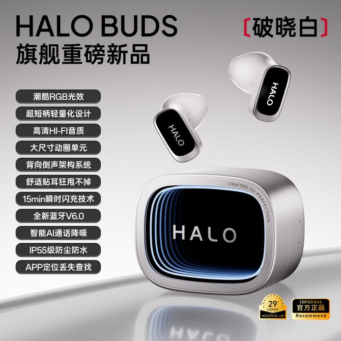 漫步者/EDIFIER 真无线潮玩蓝牙耳机 半入耳HiFi音质耳麦 赛博深渊灯效超长续航手机音乐耳塞Halo Buds 带深渊灯的潮玩耳机,幻彩RGB灯效,超短柄舒适佩戴,大尺寸动圈单元,高解析细节架构,AI通话降噪,蓝牙6.0,超长续航,多EQ音效,专属APP! 兑换价格 9800 里程 会员卡别 终身白金卡 白金卡 金卡 银卡 普通卡 儿童卡 服务 由 智科精品 发货并提供售后 颜色: 白色 黑色 粉色 购买数量: 件 库存件 配送地址: 立即购买 加入购物车 成功添加到购物车 关闭 购物车共有 种商品 总金额为: 组合销售 产品介绍 产品规格 售后服务 产品咨询 发现好货 飞利浦/Philips 蓝牙耳机骨传导概念真无线挂耳式开放式不入耳夹式运动跑步 TAT2708 5400 里程 漫步者(EDIFIER) H230P入耳式重低音手机耳机/线控可通话运动耳塞 低失真 强劲低频 2700 里程 飞利浦/Philips 蓝牙耳机 TAT1199-米白色 真无线半入耳式运动跑步迷你音乐降噪游戏低延迟长续航通用华为苹果 3500 里程 飞利浦(PHILIPS) TAT2708 开放式真无线不入耳挂耳式耳机健身运动跑步 5500 里程 纽曼 MX660线控通话耳机手机入耳式通用耳塞苹果安卓通用 1300 里程