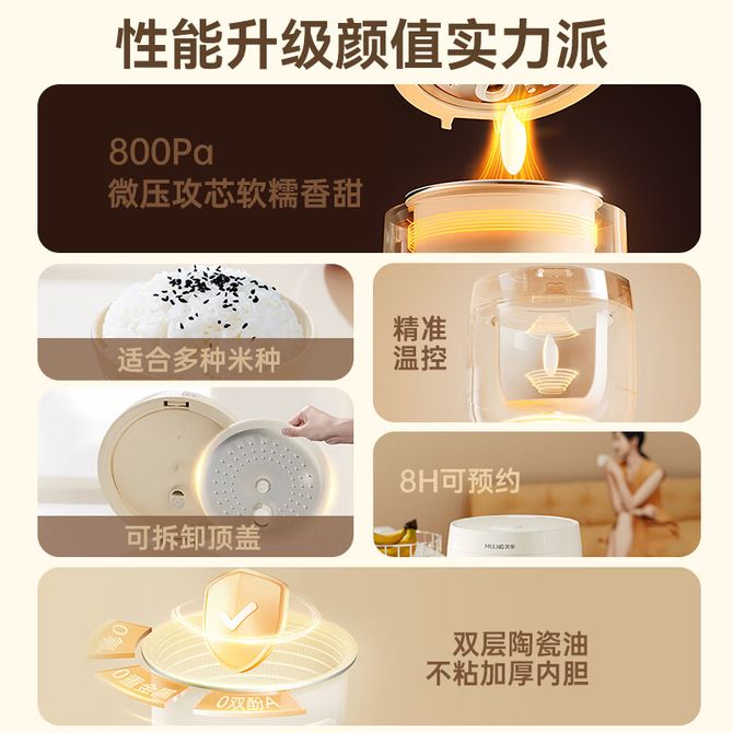 组合销售 产品介绍 产品规格 售后服务 产品咨询 发现好货 苏泊尔(SUPOR) 电饭煲电饭锅4L大容量 不粘内胆4-6个人前置大屏面板24小时预约上蒸下煮多功能家用智能SF40FC0063 7700 里程 美菱/MELNG 电饭煲3L触控式预约定时MF-LC3005 4400 里程 美的(Midea) 电饭煲 家用3L智能预约多功能电饭锅小型1-4人煮饭锅智能 白色 MB-FB30M161 7800 里程 康佳/Konka 迷你电饭煲小电饭锅2L容量智能温控12小时预约煮饭煮粥锅 4800 里程 美的/Midea 电饭煲电饭锅3-4个人家用4L大容量聚能釜金属机身大火力米饭锅【升级焖香阀】RE417 8700 里程