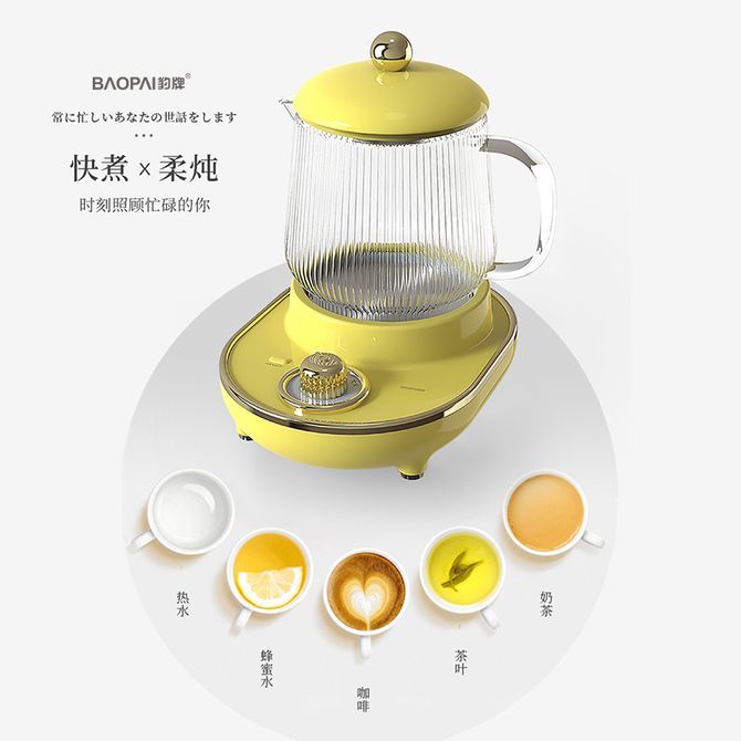 豹牌 多功能养生壶 高硼硅玻璃壶身 BP-9827养生炖杯 0.6L 全自动花茶煮茶器 黄色 0.6L精巧容量,高硼硅玻璃壶体 兑换价格 4900 里程 会员卡别 终身白金卡 白金卡 金卡 银卡 普通卡 儿童卡 服务 由 弘济家电 发货并提供售后 颜色: 黄色 购买数量: 件 库存件 配送地址: 立即购买 加入购物车 成功添加到购物车 关闭 购物车共有 种商品 总金额为: 组合销售 产品介绍 产品规格 售后服务 产品咨询 发现好货 九阳/Joyoung 养生壶1.5L茶具电茶壶煮茶壶花茶壶玻璃煮茶器煎药壶中药锅药膳电水壶烧水壶 3900 里程 美的/Midea 养生壶 1.5L家用多功能小型全自动办公室烧水壶加厚玻璃煮茶热水壶 MK-YS15P201 4200 里程 美的/Midea 养生壶 1.5L家用养生壶全自动玻璃烧水壶24h预约烧水壶12小时防干烧保护智能恒温 MK-YS15P202 3500 里程 九阳/Joyoung 养生壶迷你玻璃花茶壶煮茶器 12大功能11档温度 电水壶热水壶烧水壶 1.5L DGD1506BQ 3900 里程 美的/Midea 养生壶 1.5L全自动电热水壶 24h预约12小时智能恒温 14大功能11档控温 花茶壶煮茶器MK-Y12Q 3500 里程