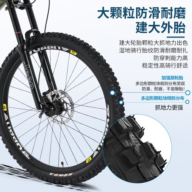 Jeep 双肩前叉减震油压碟刹变速12速27.5寸软尾速降铝合金山地自行车 悬崖 12速27.5寸、 双肩前叉减震油压碟刹、适合175-190cm身高骑行 兑换价格 121400 里程 会员卡别 终身白金卡 白金卡 金卡 银卡 普通卡 儿童卡 服务 由 至恩户外运动专营店 发货并提供售后 颜色: 军绿色 购买数量: 件 库存件 配送地址: 立即购买 加入购物车 成功添加到购物车 关闭 购物车共有 种商品 总金额为: