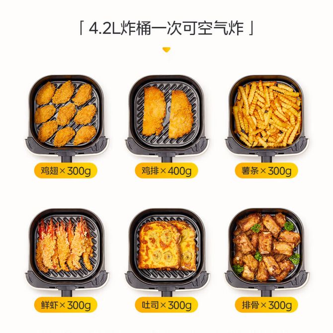 组合销售 产品介绍 产品规格 售后服务 产品咨询 发现好货 苏泊尔(SUPOR)空气炸锅 家用多功能4.2L大容量 烤箱薯条机 无油烟电炸锅 大功率 无油低脂煎炸锅KJ42D811 6500 里程 苏泊尔(SUPOR)空气炸锅家用3L大容量电炸锅 蒸汽嫩炸多功能无油烟煎炸薯条机烤箱KD30DQ815 21700 里程 美的/Midea 空气炸锅 家用5升可视炸锅金属内腔体微蒸汽多功能智能双旋控温电炸锅 KZE5089 10900 里程 美的/Midea 空气炸锅 可视 不用翻面 金属内腔 蒸汽嫩炸 三档烘烤风力 5L KZC5089 10700 里程 小熊/Bear 空气炸锅 4D漩烤不用翻面 全自动 5L实用大容量 可视 蒸汽嫩炸 控油脱脂 炸烤箱一体机 9100 里程