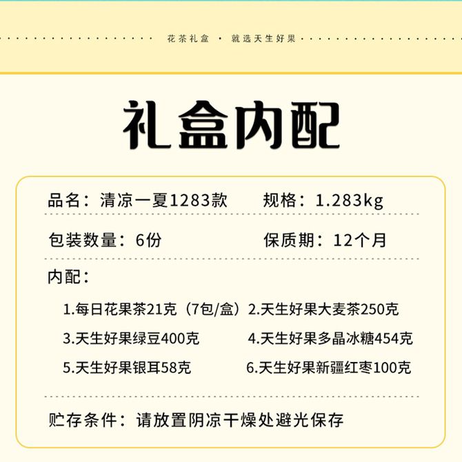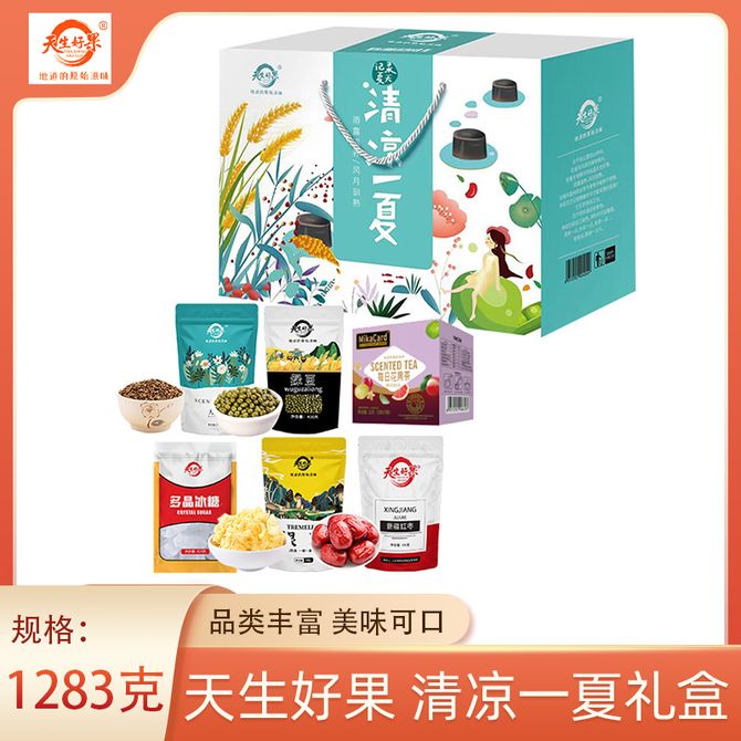 天生好果/TIAN SHENG HAO GUO 清凉一夏礼盒1283g花果茶大麦茶绿豆冰糖银耳新疆红枣 品类丰富,美味可口,真材实料 兑换价格 3400 里程 会员卡别 终身白金卡 白金卡 金卡 银卡 普通卡 儿童卡 服务 由 壮乡优品生活馆 发货并提供售后 规格: 礼盒 购买数量: 件 库存件 配送地址: 立即购买 加入购物车 成功添加到购物车 关闭 购物车共有 种商品 总金额为: 组合销售 产品介绍 产品规格 售后服务 产品咨询 发现好货 岚海渔歌(LANHAIYUGE) 金钩海米虾米干货非特级无盐新鲜开洋虾皮海虾米干虾仁干250g 1900 里程 十月稻田 东北黑木耳 150g肉厚无根干木耳黑龙江东宁特产 火锅炒菜凉拌 6970093763042 1100 里程 十月稻田 红枸杞子250g半斤特级干枸杞泡水煲汤煮粥食材 1100 里程 十月稻田 新疆灰枣500g一等灰枣新疆特产小红枣零食煲汤煮粥干货 1100 里程 岚海渔歌 金钩海米250g虾米干货 1900 里程