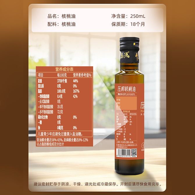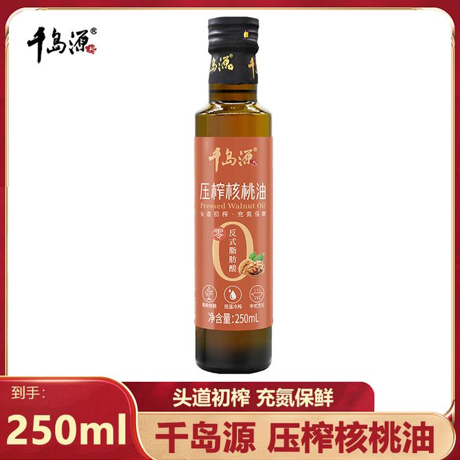 千岛源 压榨核桃油250ml新鲜核桃头道初榨0反式脂肪酸家用热炒有营养 经济实惠 健康营养 核桃清香 兑换价格 1700 里程 会员卡别 终身白金卡 白金卡 金卡 银卡 普通卡 儿童卡 服务 由 壮乡优品生活馆 发货并提供售后 油品规格: 250ml 购买数量: 件 库存件 配送地址: 立即购买 加入购物车 成功添加到购物车 关闭 购物车共有 种商品 总金额为: 组合销售 产品介绍 产品规格 售后服务 产品咨询 发现好货 长寿花 金胚玉米油食用油非转基因压榨一级 1.8L 2200 里程 珍佰粮菜籽油5L 5500 里程 福临门 一级大豆油900ML/瓶 优质家用食用油 1100 里程 福临门 家香味食用油 沂蒙土榨 花生仁油900ml 1600 里程 金龙鱼 浓香花生油5L 大桶装物理压榨一级厨房烹饪炒菜植物油粮油家庭食用油 浓香花生油食用油 5000 里程