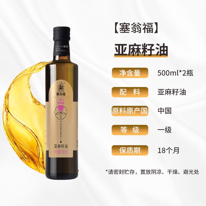 塞翁福 纯亚麻籽油礼 500ml*2瓶