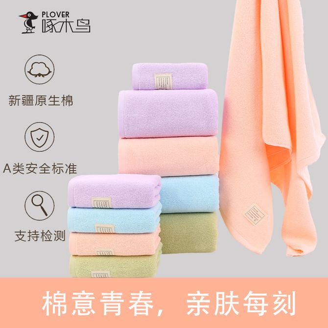 啄木鸟/Plover 纯棉青春毛巾套装 毛巾:33*73cm*1条 浴巾:70*140cm*1条 重量:毛巾:85g;浴巾:340g ZMN-MJ012