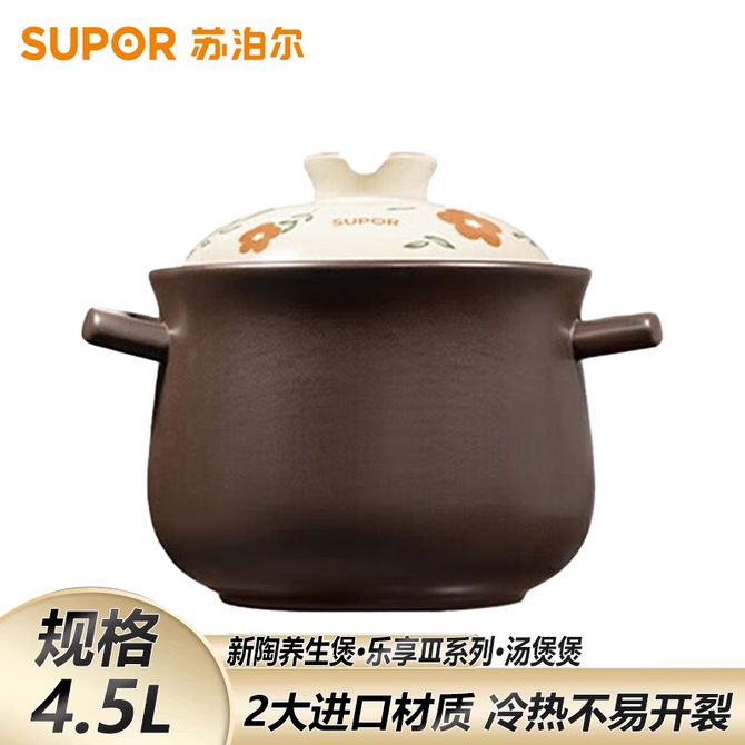 苏泊尔(SUPOR) 新陶养生煲·乐享Ⅲ系列·汤煲煲 4.5L家用砂锅煲汤熬药煮粥焖饭养生汤锅大肚煲瓦煲瓦罐 4.5L容量,详情共用,盖子特调花纹,边缘出气孔,光滑釉面,清洗便捷 兑换价格 8700 里程 会员卡别 终身白金卡 白金卡 金卡 银卡 普通卡 儿童卡 服务 由 广西自贸区贝佳网络科技有限公司 发货并提供售后 颜色: 其他 购买数量: 件 库存件 配送地址: 立即购买 加入购物车 成功添加到购物车 关闭 购物车共有 种商品 总金额为: